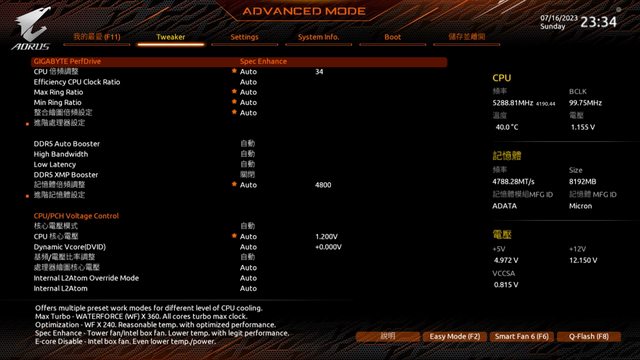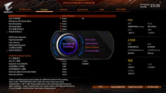 最後PerfDrive設定為Spec Enhance並搭配之前開箱過的風魔3雙塔散熱器作裝機使用。