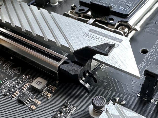PCI-E插槽則有兩個,為X16尺寸,皆支援PCI-E 4.0,其中一個插槽預裝有散熱片。