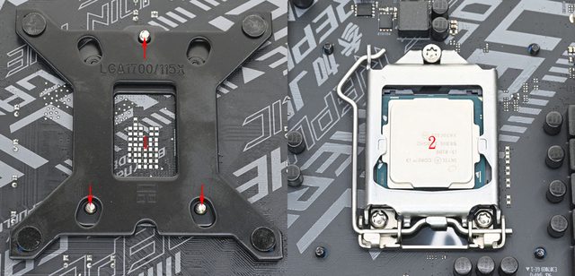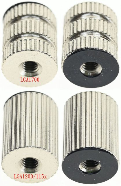 ▼LGA1700托架固定柱(左上/右上)外觀有2條溝槽,LGA1200/115x托架固定柱(左下/右下)