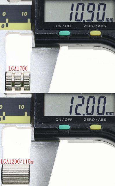 ▼LGA1700托架固定柱(上)含墊片長度10.9mm,LGA1200/115x托架固定柱(下)含墊片長度