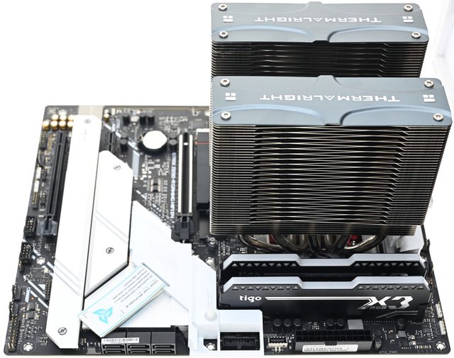 ▼正式安裝前先試裝,確認散熱器前塔/後塔熱導管不會與主機板VRM散熱片發生干涉,確