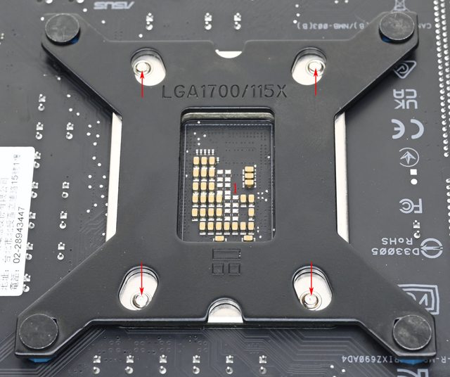 ▼Intel LGA1700/1200/115x背板4個角各有1個由2個相連正方形組成的開孔