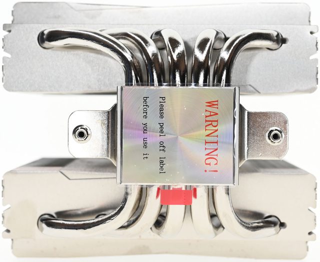 ▼散熱器底座的處理器接觸面有保護貼,上面用英文標示”警告!使用前請撕除保護貼”