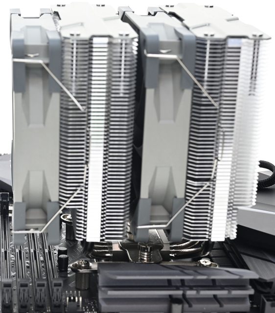 ●高度157mm雙塔採向上偏置設計,下方散熱鰭片裁切處理,提高安裝相容性