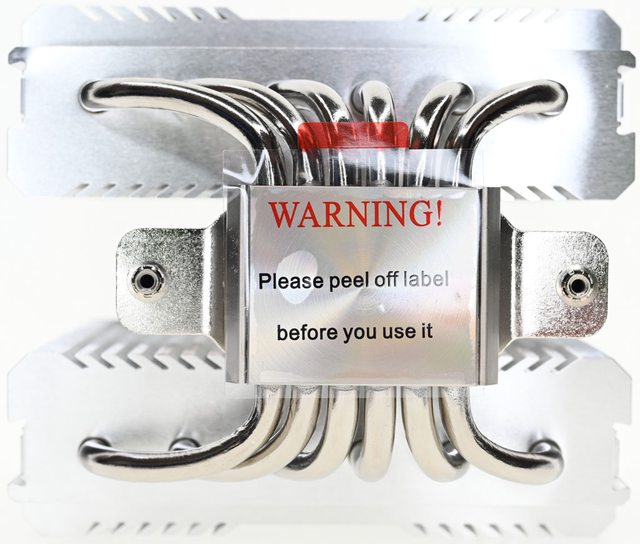 ▼散熱器底座的處理器接觸面有保護貼,上面用英文標示”警告!使用前請撕除保護貼”
