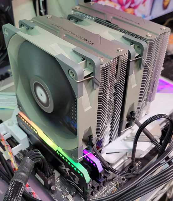 與VRM散熱片之間的干涉,前塔風扇蓋在記憶體插槽上方,會阻擋記憶體燈光及拆裝,當