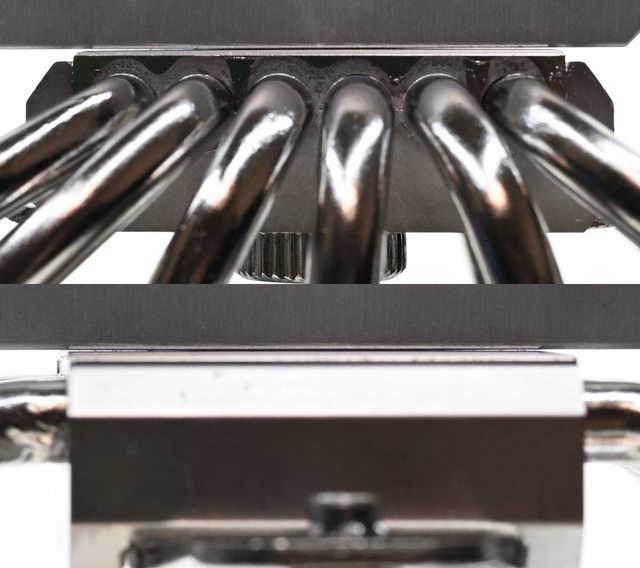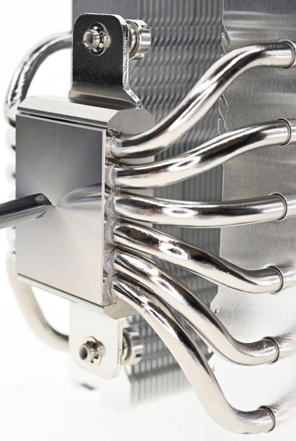 熱鰭片裁切處理,表面鍍鎳的銅製處理器接觸面和6支直徑6mm無重力熱導管之間採用焊接