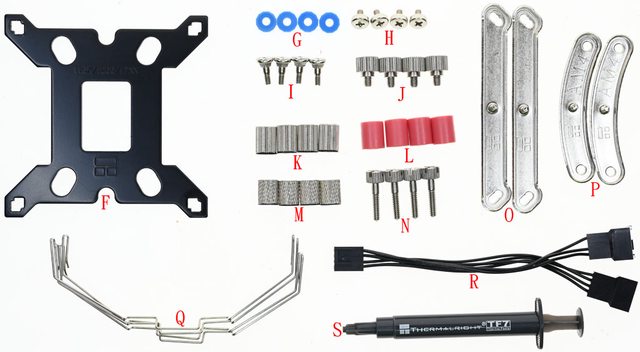 (Q)、1對2風扇分接線(R)、TF-7散熱膏(S)