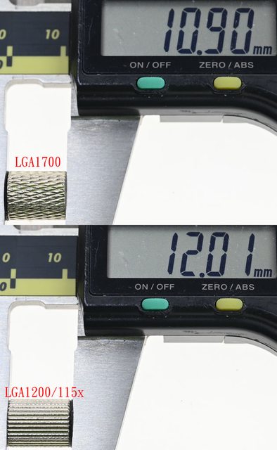 ▼LGA1700托架固定柱(上)含墊片長度10.9mm,LGA1200/115x托架固定柱(下)含墊片長度