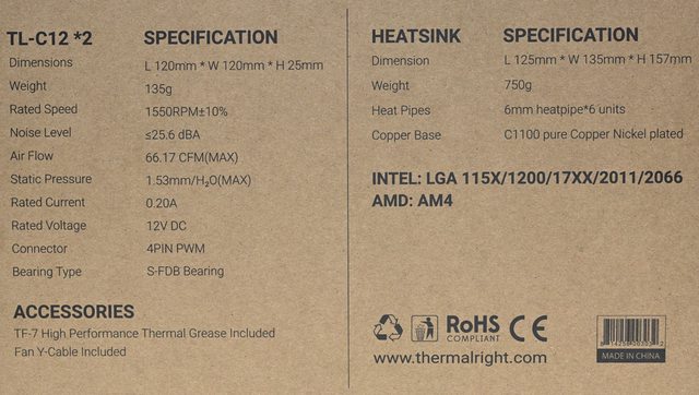 扇,讓氣流充分通過前塔及後塔散熱鰭片。隨附TF-7高品質散熱膏及1對2風扇分接線,出