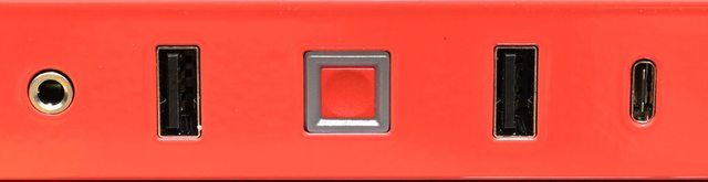3.5mm插座、1個USB3.2 Type-A、方形電源按鈕/電源指示燈(外環區域)、1個USB3.2