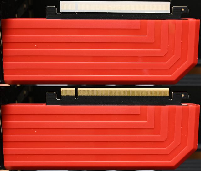 ○直立插槽安裝顯示卡後,插槽前端卡榫會被蓋住,不易按壓解鎖