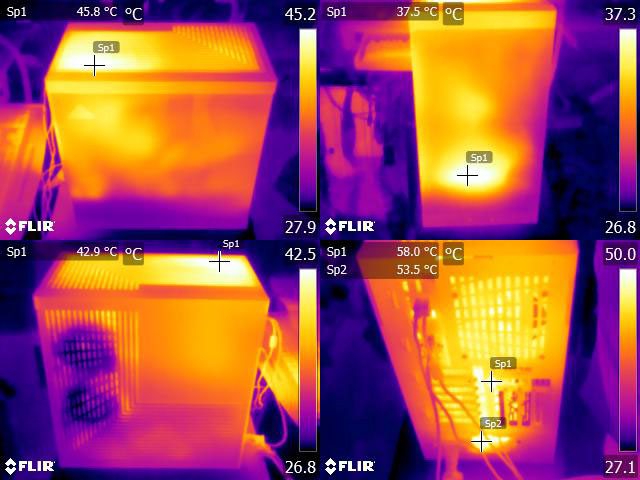▼CPU+GPU高負載30分鐘的左側/頂部(左上)、前方(右上)、右側/頂部(左下)、後方(右下