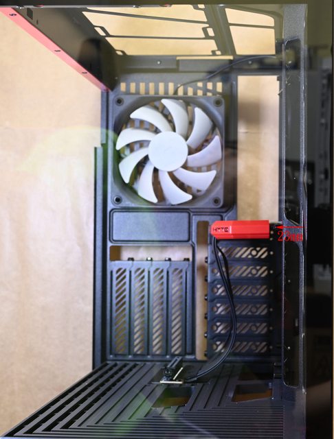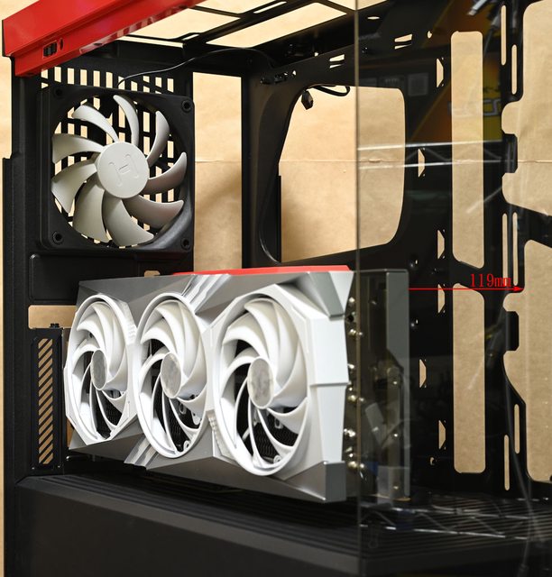 璃側板之間的氣流空間,安裝在底部的風扇可提供氣流給顯示卡