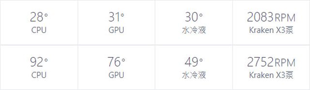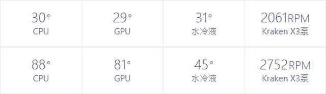 ▼CPU+GPU高負載前(上)及高負載30分鐘(下)的NZXT CAM溫度比較