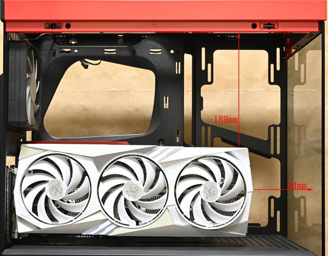 360mm。頂部右上的開孔除具備通風效果外,也方便連接主機板上方接頭線路,右下有商