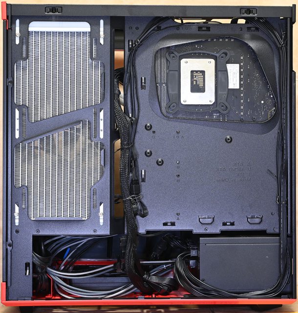 接著採用底部及右側前方風扇進氣,後方風扇排氣配置