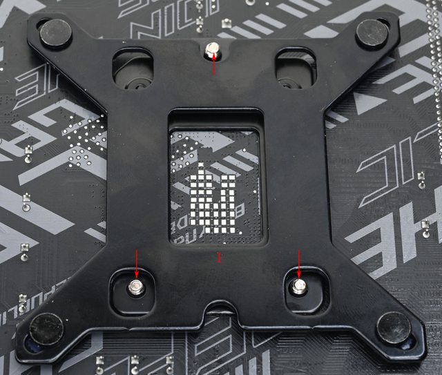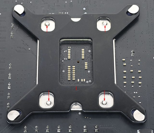 理器扣具底板3個螺絲鎖點位置(紅色箭頭)