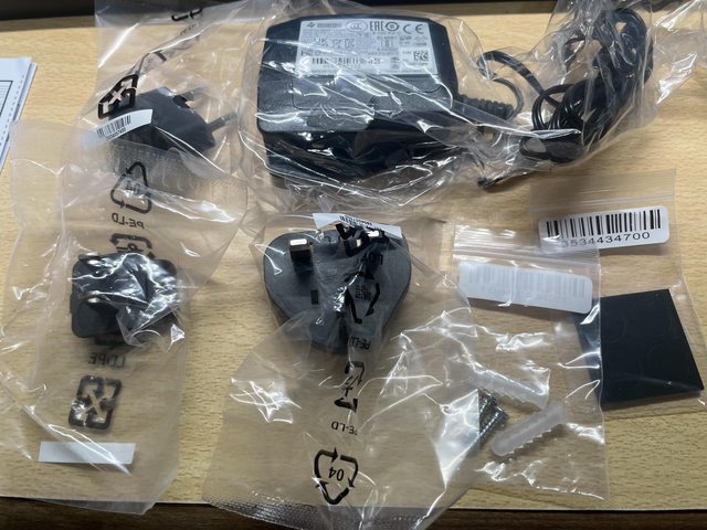 交換器本體寬度只占盒子的一半。上面塞了一堆配件,像是對應各種規格的插頭、壁掛用