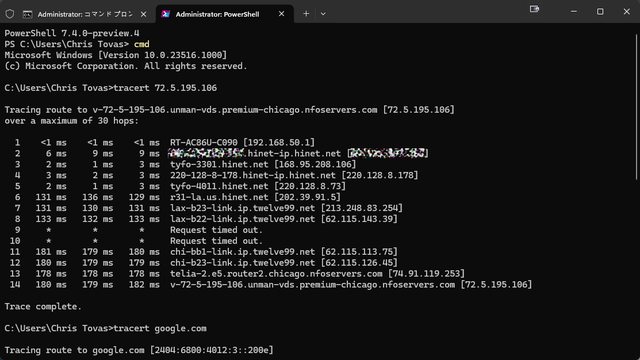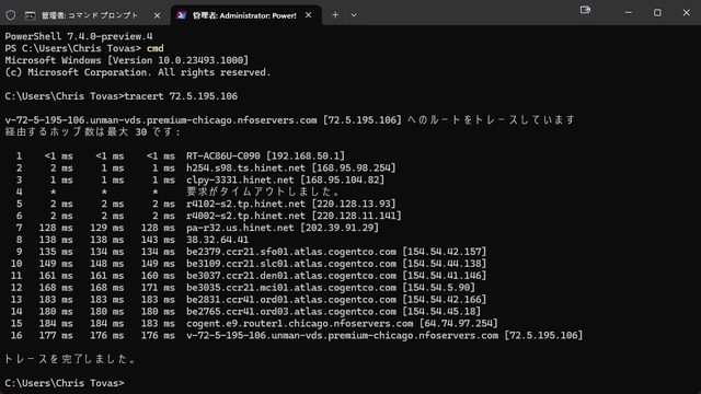 至於連外我個人是覺得沒有太大的差異。用Tracert撈出來的結果也沒差太多(範例是連線