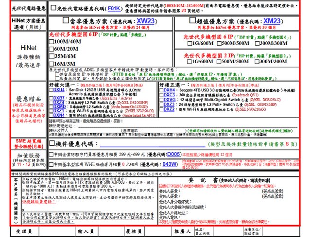 然後連櫃台他們也不知道固定制可以合併簽電路促銷方案。一開始對方還跟我說不能合併