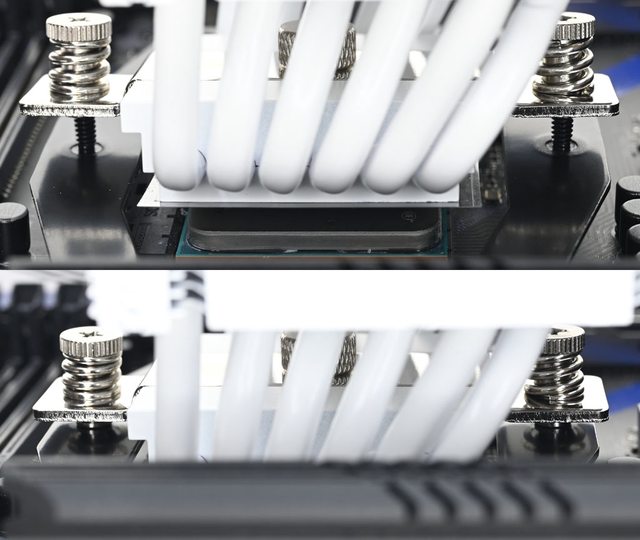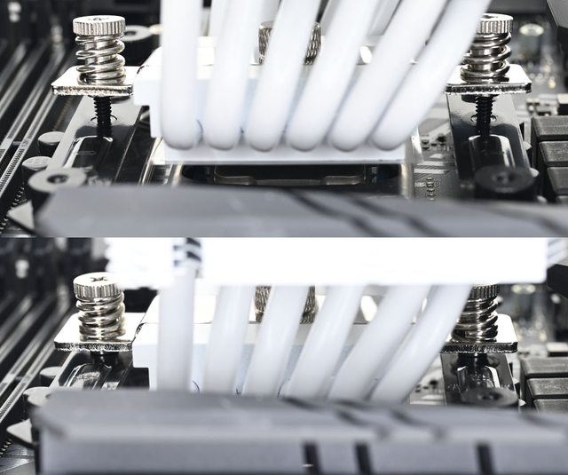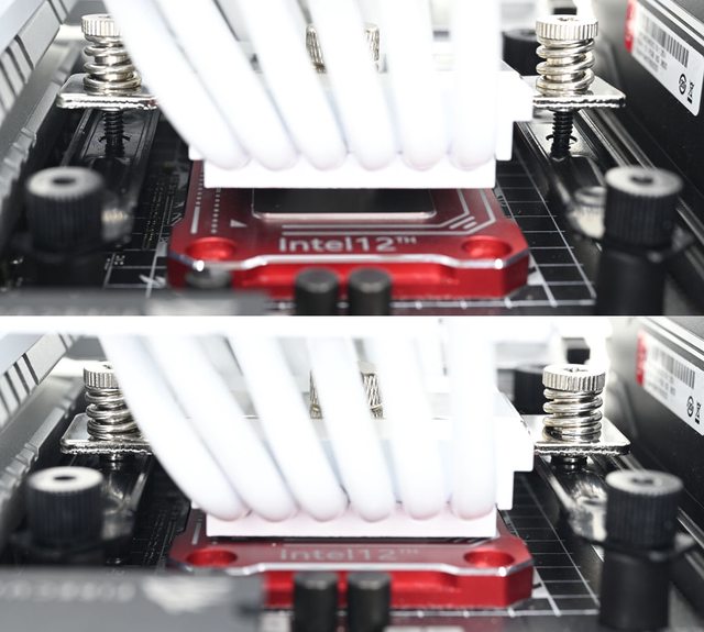 ▼黑色螺柱對應LGA1200/115x/1366(左),銀色螺柱對應LGA1700(右),螺柱底部凸起處造