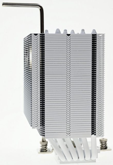 ▼從側面看,散熱器往後偏移,下方5片散熱鰭片縮小