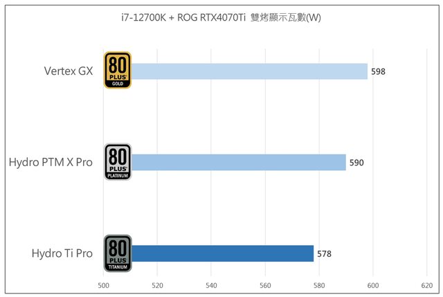 家顯示瓦數比較,鈦金等級的Hydro Ti Pro還是比金牌少了約20w。
