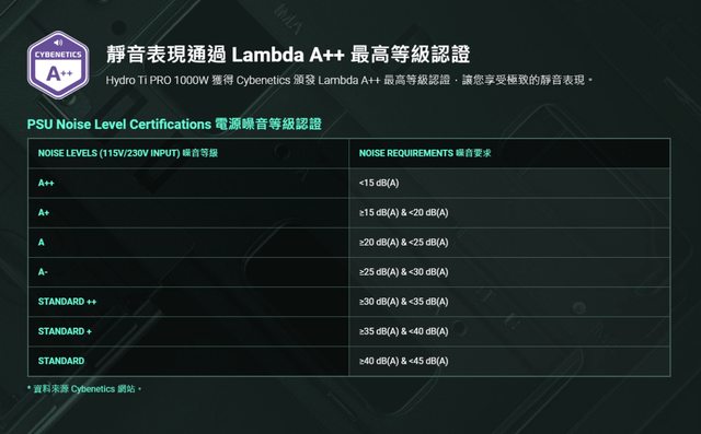 .Lambda A++ 噪音等級認證,最靜音的電源
