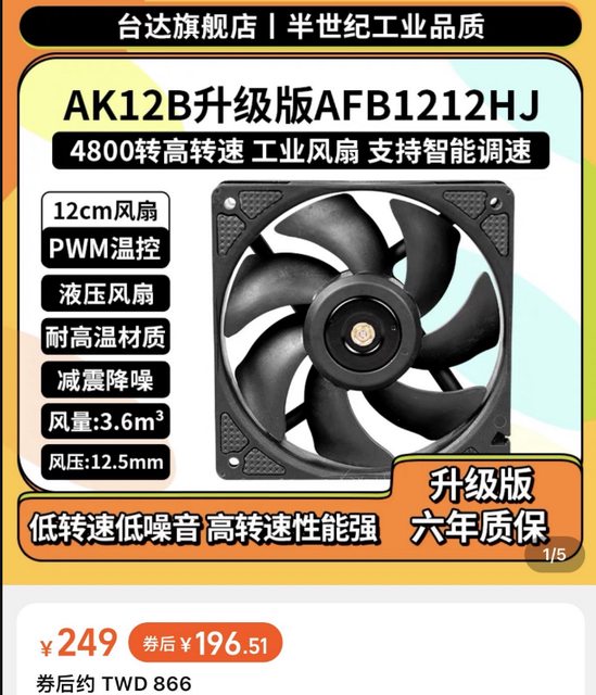→ tomomo520: 以前台達都是萬轉絞肉扇,這顆轉速不夠 114.33.130.100 08/25 06:31