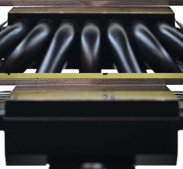 器採向後偏移設計,不阻擋前方記憶體燈光及拆裝,7支直徑6mm熱導管搭配52層雙塔黑化