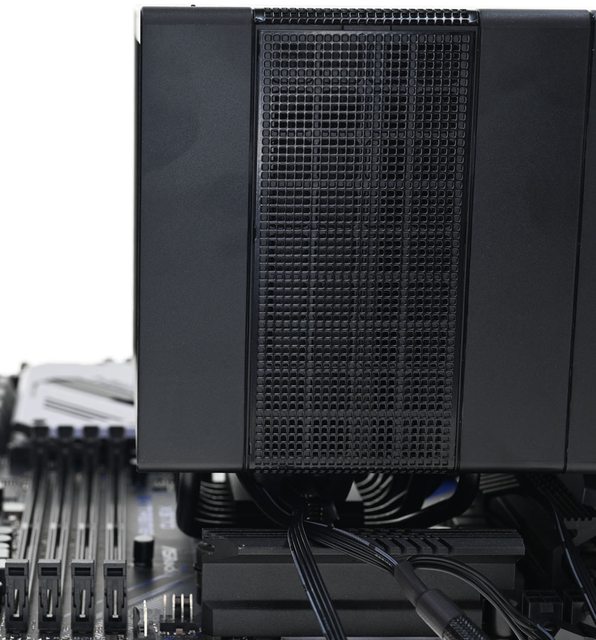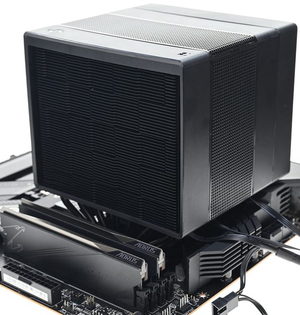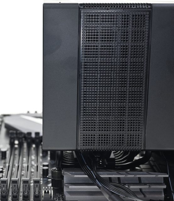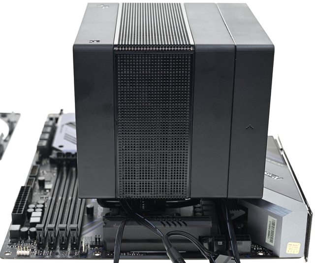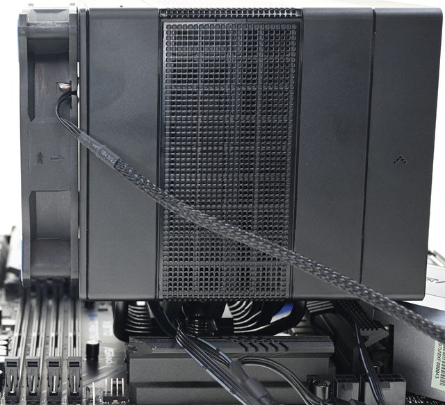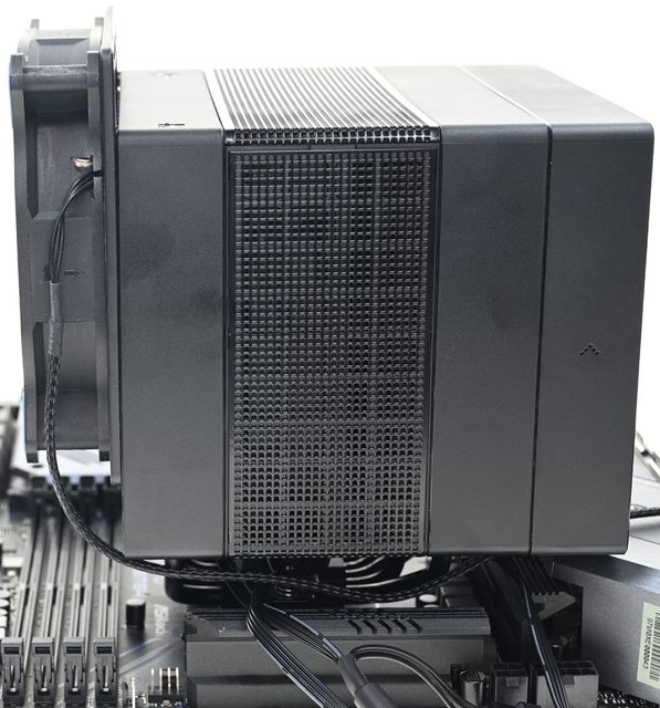 ●黑色外觀高度164mm散熱器,採向後偏移設計,不阻擋前方記憶體燈光及拆裝