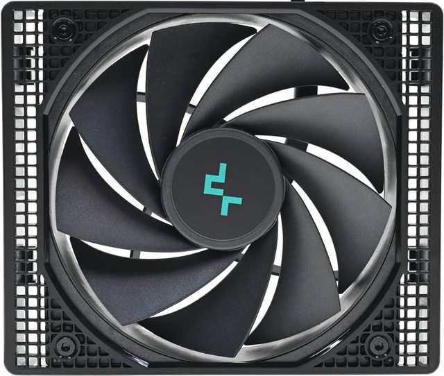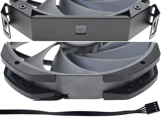 ▼中間風扇尺寸為140×140×25mm,採用FDB軸承和6極馬達,9葉片扇葉軸心有商標