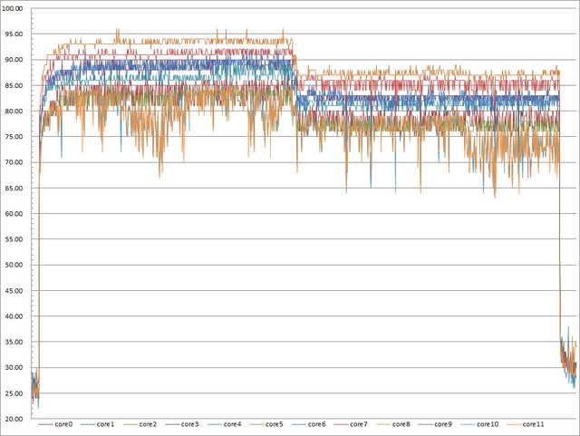 ▼效能模式高負載30分鐘CORE TEMP溫度記錄圖