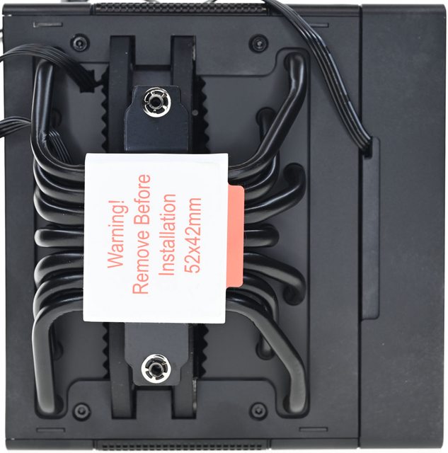 ▼散熱器本體除前方/後方外都用黑色外殼包覆,除美觀外還可以集中氣流,底座兩邊各