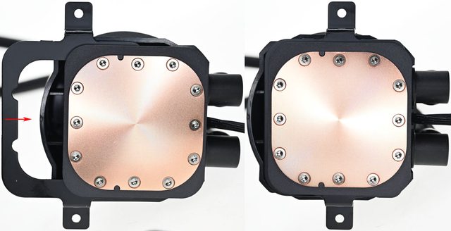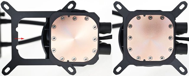 ▼水冷頭處理器接觸面使用星型沉頭螺絲固定