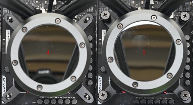 熱片發生干涉。確認完成後取下水冷頭,處理器表面清潔後塗上散熱膏,撕除水冷頭處理