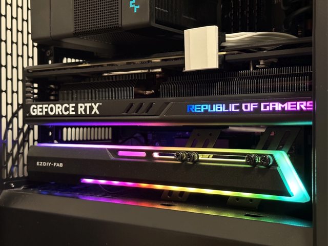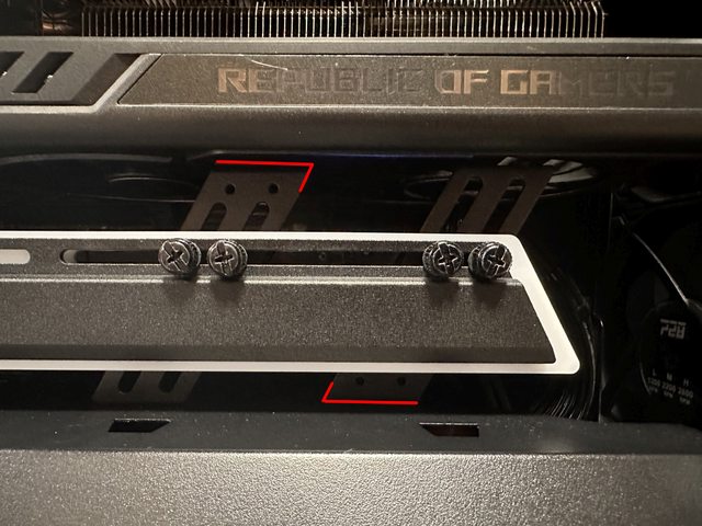 這款支撐架相較一般鎖PCI-E位置的長條狀支撐架優勢在於有兩個固定/支撐點,鎖PCI-E