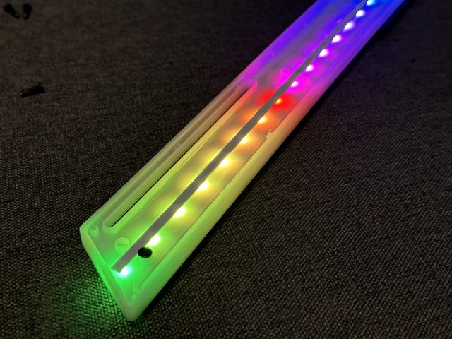 改良方法十分簡單,將燈條置於燈箱中間位置,且將燈珠方向改為向前方,則燈箱上下方