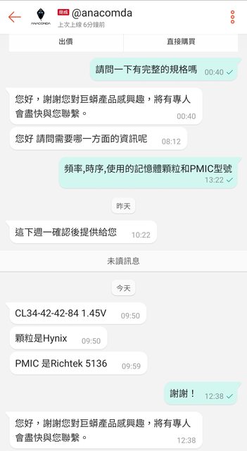 早上客服的回覆後,由於甲殼聊聊功能通知極爛,就一次把問題問完