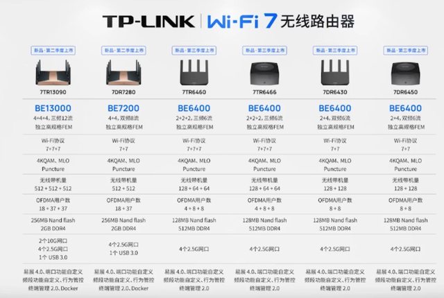 如上圖所示,TP-LINK 首批 Wi-Fi 7 路由器包括