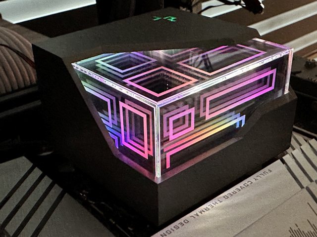 載無光風扇,微奢華的是冷頭具有無限鏡面方塊ARGB燈效,整體拿捏在顯眼但是不算太浮