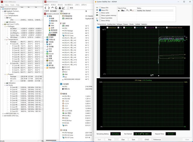 最後是溫度測試,i7-12700K的裸測平台,設置為