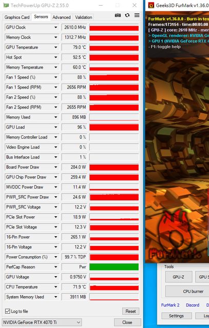補上這張卡裸測狀態跑FurMark時的溫度
