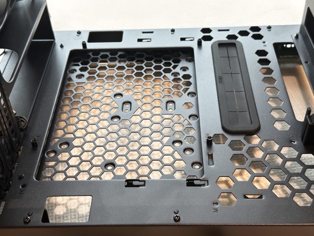 底部也有大量開孔,不過除了電源支架外無設置其他配件的安裝孔位。