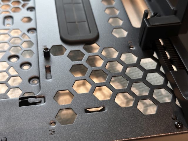 主機板背部的支架能安裝2.5吋及3.5吋裝置,但安裝後可能會與背面風扇衝突。