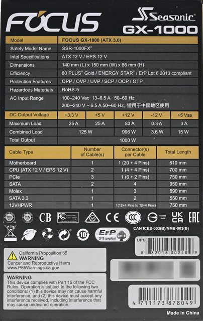 標題[開箱] Seasonic FOCUS ATX 3.0 GX-1000 1000W