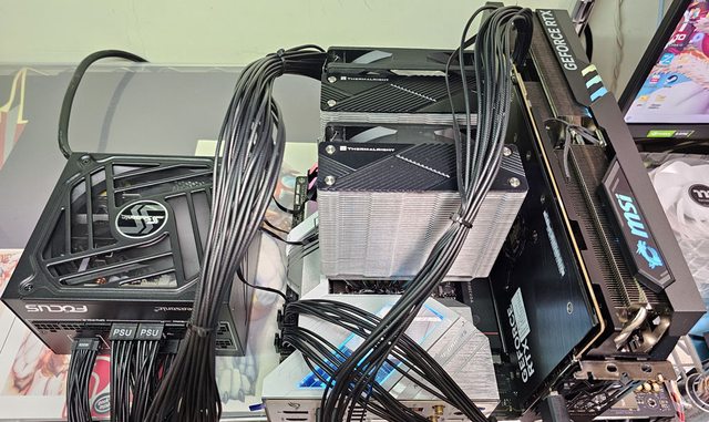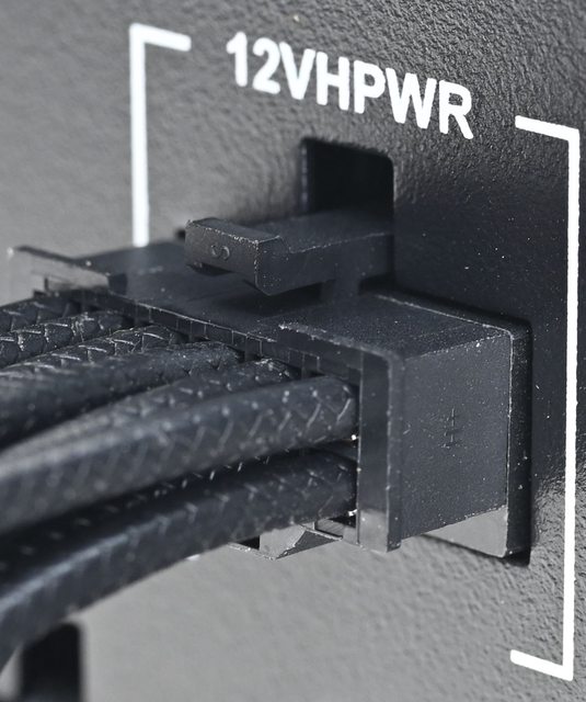 ▼用隨附的12VHPWR模組化線材連接MSI GEFORCE RTX 4090 GAMING X TRIO進行測試