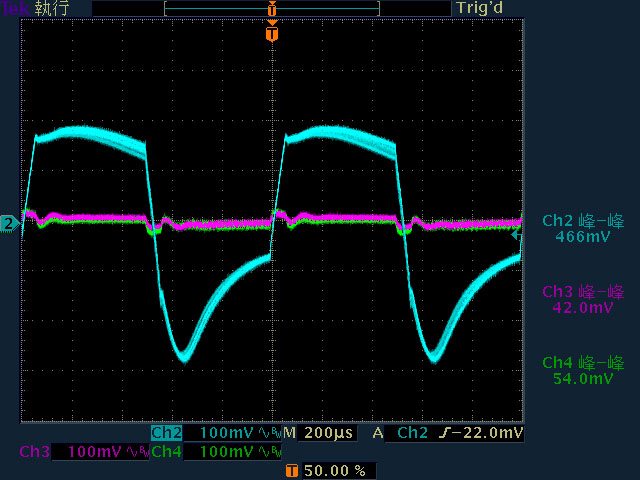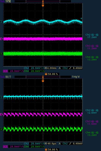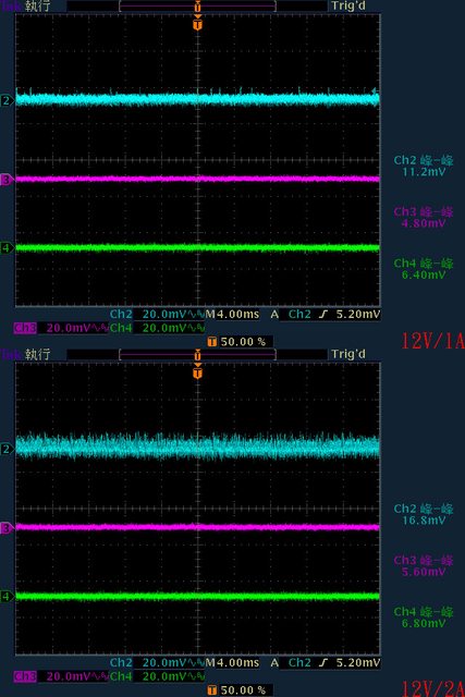 17.2mV/11.2mV/13.2mV,高頻漣波分別為12.8mV/11.6mV/13.2mV