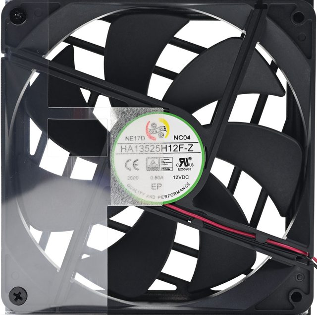 ▼採用Hong Hua HA13525H12F-Z 13.5公分12V/0.5A風扇,並設置氣流導風片